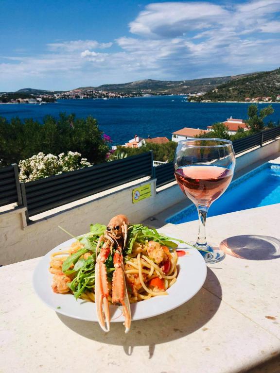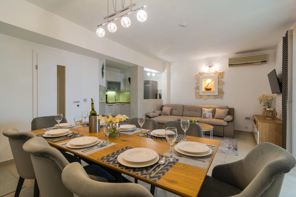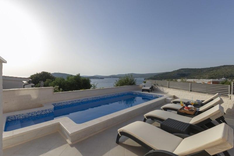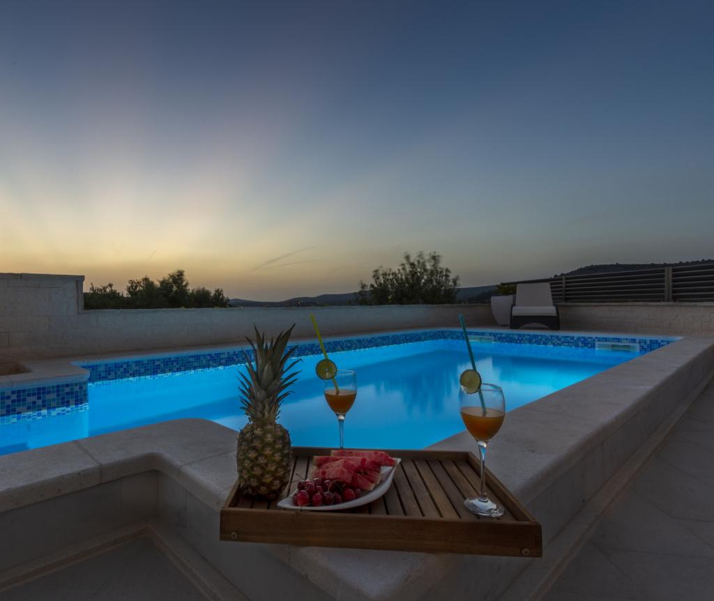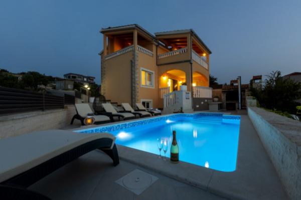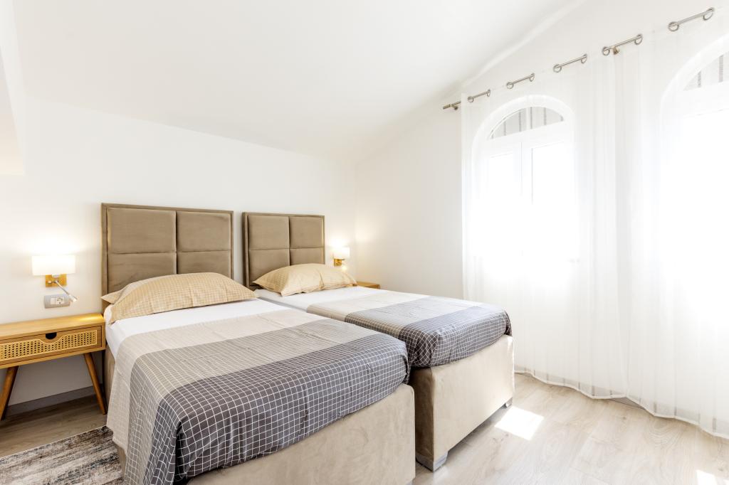 La maison de vacances récemment construite est située dans un endroit calme, loin du bruit et de la foule, vous offrant une oasis de paix pour vos vacances avec une vue dégagée sur la mer cristalline. La maison se compose de 4 chambres à coucher, 2 salles de bain, cuisine et salon, 2 terrasses et un balcon donnant sur le départ matinal et le coucher de soleil magique en soirée. Dans la cour il y a une piscine chauffée avec jets de massage et chaises longues, une douche extérieure et un grand barbecue qui ne sont que nos invités au service, et dispose de son propre parking.