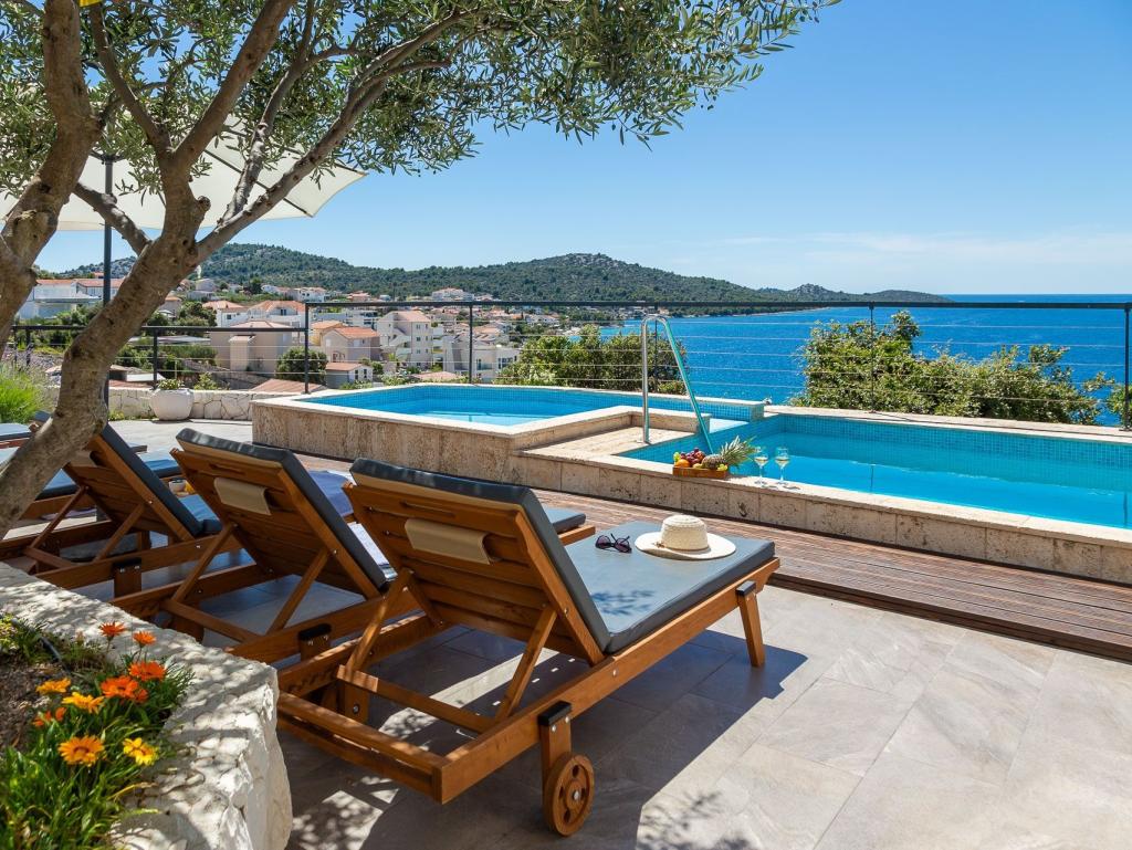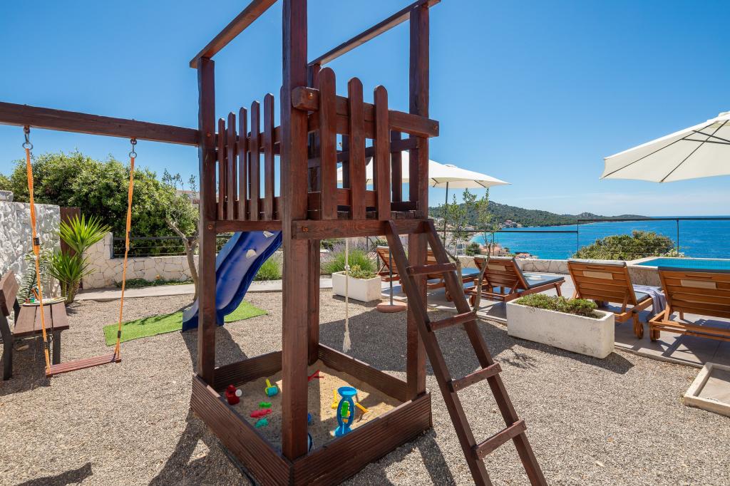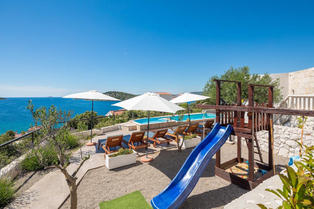 Nous sommes allés chez Marija plusieurs fois et à chaque fois nous attendons avec impatience le calme et la détente. Le point fort est la vue. Le matin avec un café, la journée en prenant un bain de soleil ou le soir avec les plus beaux couchers de soleil. Nous ne pouvons pas nous lasser les uns des autres. Les deux piscines, l'aire de jeux et le grill extérieur sont d'autres particularités que nous apprécions beaucoup. Les installations sont de premier ordre et beaucoup est investi pour rendre votre séjour aussi confortable et détendu que possible. Les chambres sont grandes et meublées selon des normes élevées. Marija et sa famille sont très sympathiques, chaleureuses et serviables. Nous aimons toujours revenir et pouvons fortement recommander un séjour ici aux familles avec enfants de tous âges. La plage et la petite ville sont accessibles à pied. Tout ce dont vous avez besoin est à proximité. Les voyages à Trogir, Split, Promosten ou Sibenik sont fortement recommandés. Vous pouvez également louer des bateaux ou réserver des excursions en bateau au petit port de Razanj.