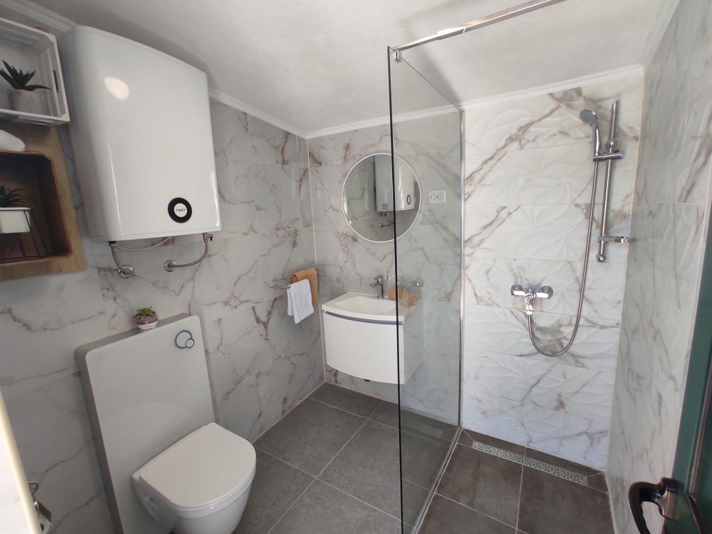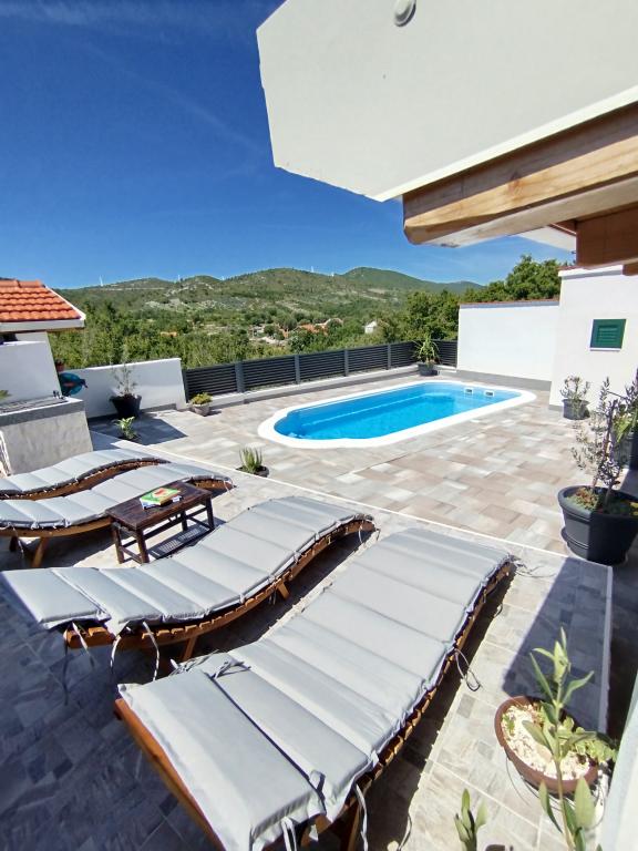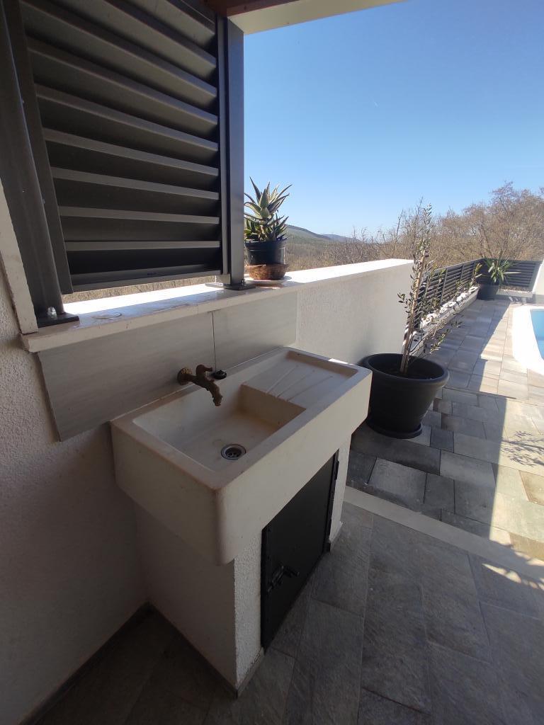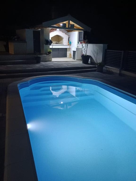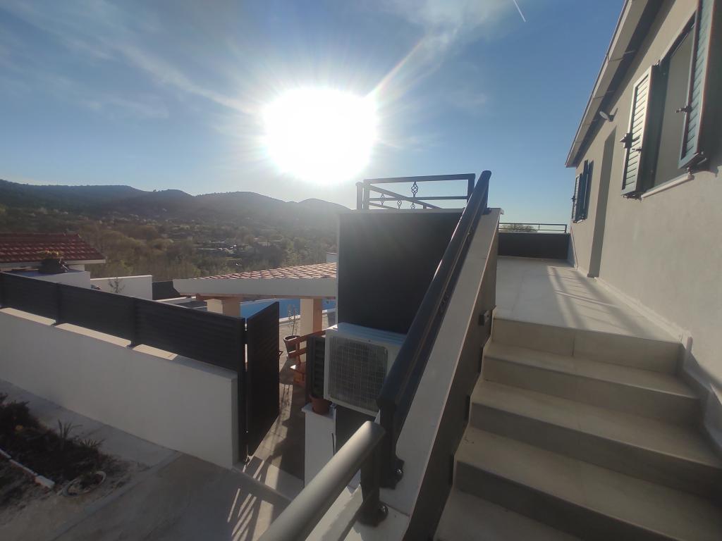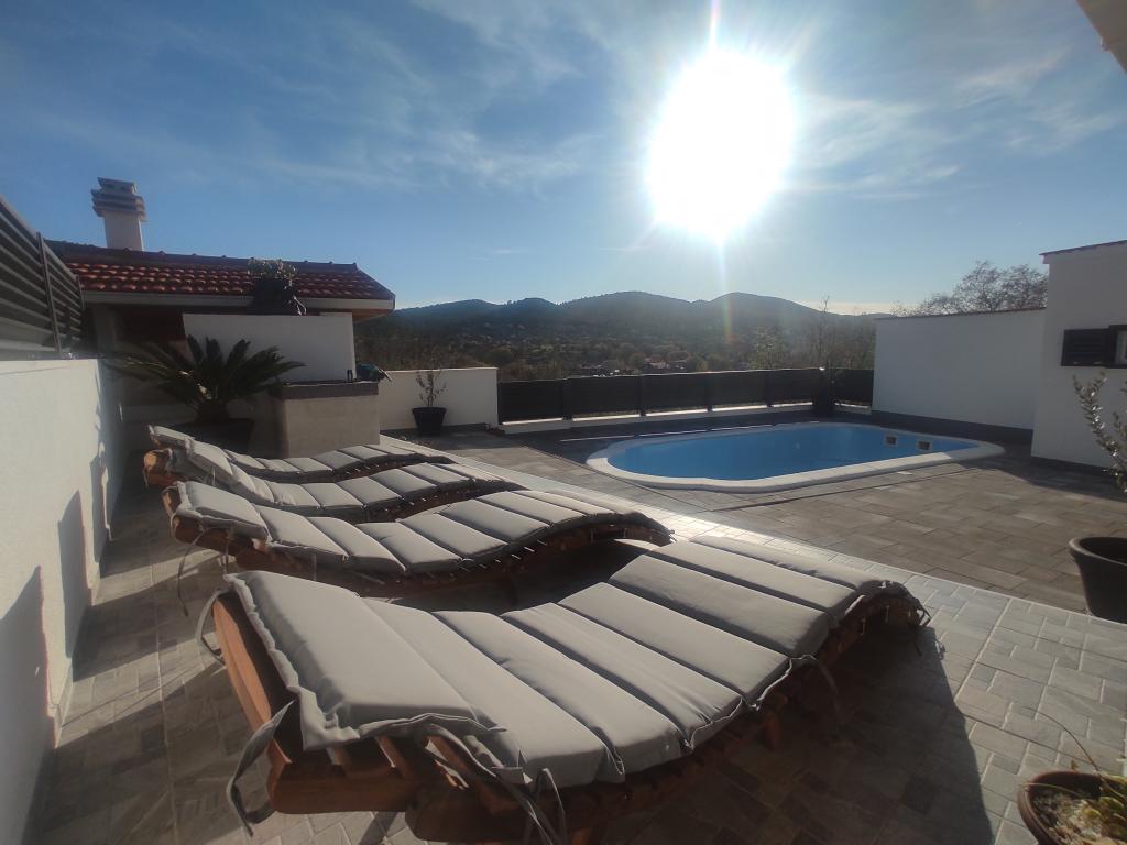 La maison est située dans le paisible village de Ljubitovica, à 20 km de la ville UNESCO de Trogir et à 18 km de la première plage. Si vous souhaitez profiter de la nature et en toute intimité, notre maison est idéale pour vous. La maison se compose d'un rez-de-chaussée et d'un premier étage, reliés par un escalier extérieur. Au rez-de-chaussée (cour) il y a une piscine chauffée, un grill extérieur, un WC avec douche et à l'intérieur une cuisine (vaisselle, réfrigérateur, lave-vaisselle, four) avec un séjour climatisé. Il y a deux chambres au premier étage. Chaque chambre est climatisée et dispose d'une télévision connectée. Les chambres disposent de lits doubles et un lit supplémentaire pour une personne est disponible (dans chaque chambre). Sur demande, sans frais supplémentaires, il est possible de mettre à disposition des clients un lit parapluie. Entre les chambres se trouvent des toilettes avec douche et un lave-linge (serviettes fournies). Il y a une grande terrasse devant la chambre. Un parking est prévu ainsi qu'un mobilier d'été extérieur pour se reposer et se restaurer (partie couverte de la cour).