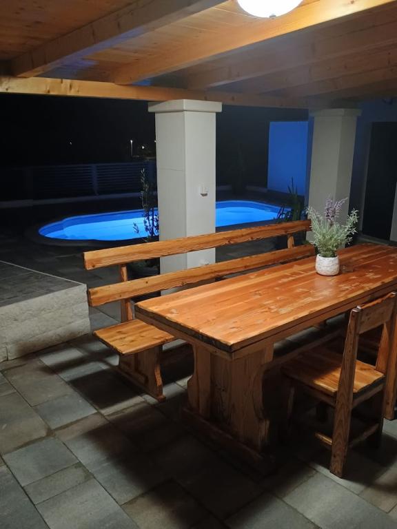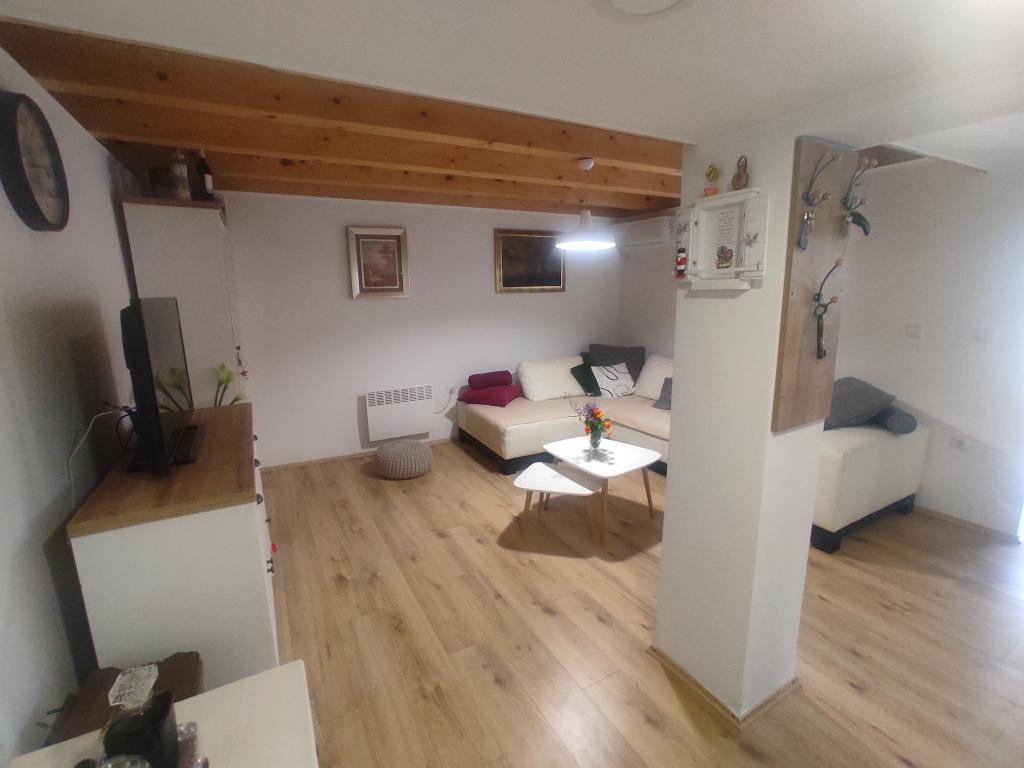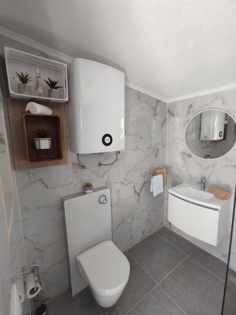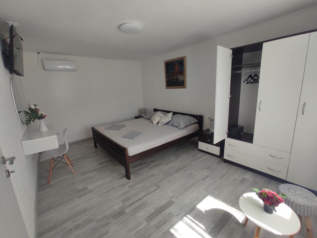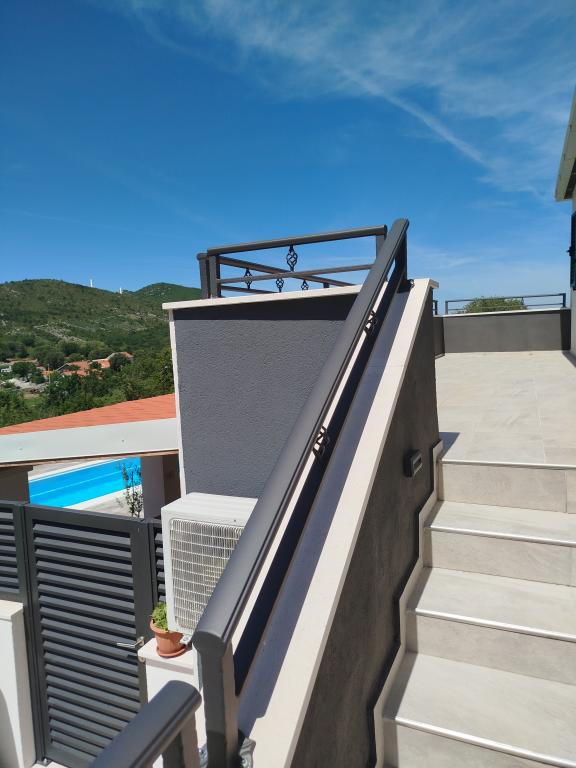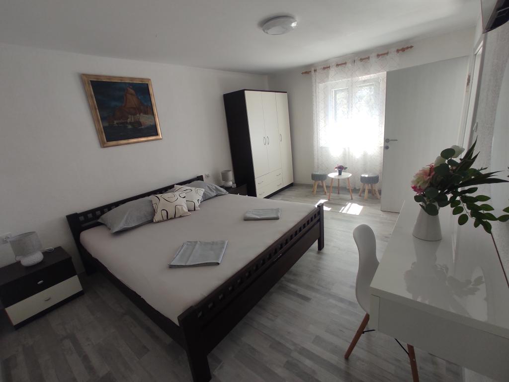 La maison est située dans le paisible village de Ljubitovica, à 20 km de la ville UNESCO de Trogir et à 18 km de la première plage. Si vous souhaitez profiter de la nature et en toute intimité, notre maison est idéale pour vous. La maison se compose d'un rez-de-chaussée et d'un premier étage, reliés par un escalier extérieur. Au rez-de-chaussée (cour) il y a une piscine chauffée, un grill extérieur, un WC avec douche et à l'intérieur une cuisine (vaisselle, réfrigérateur, lave-vaisselle, four) avec un séjour climatisé. Il y a deux chambres au premier étage. Chaque chambre est climatisée et dispose d'une télévision connectée. Les chambres disposent de lits doubles et un lit supplémentaire pour une personne est disponible (dans chaque chambre). Sur demande, sans frais supplémentaires, il est possible de mettre à disposition des clients un lit parapluie. Entre les chambres se trouvent des toilettes avec douche et un lave-linge (serviettes fournies). Il y a une grande terrasse devant la chambre. Un parking est prévu ainsi qu'un mobilier d'été extérieur pour se reposer et se restaurer (partie couverte de la cour).