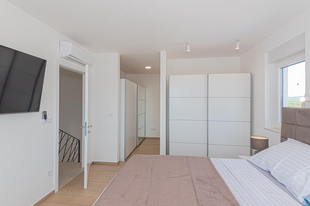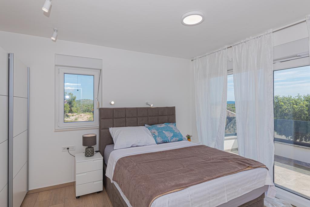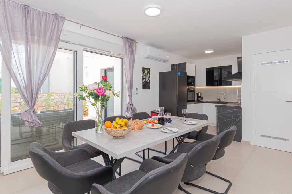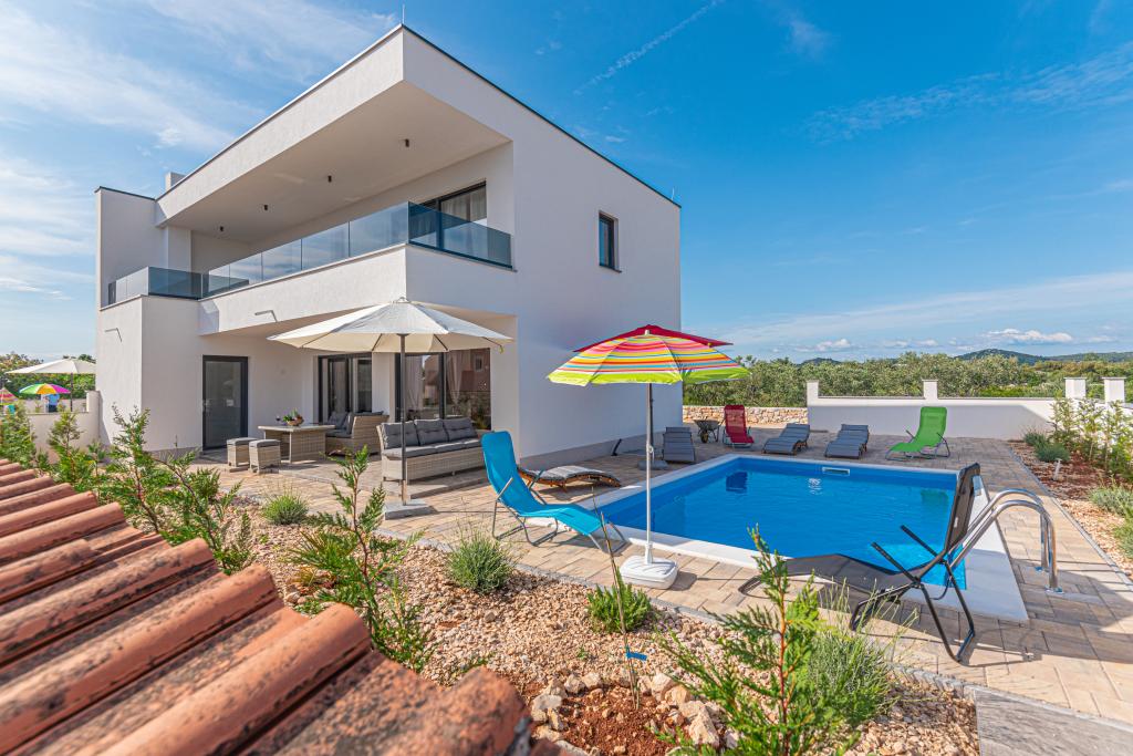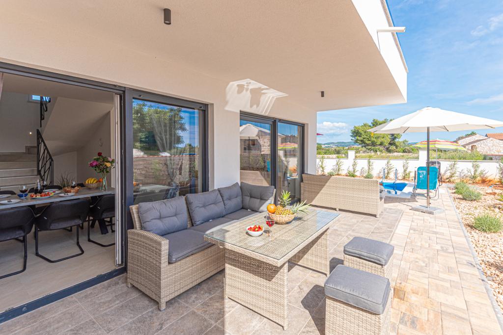 Villa Adriatic Sunrise – Des vacances paisibles près de Šibenik Profitez de la détente à la Villa Adriatic Sunrise, une belle maison de vacances avec une piscine privée chauffée et des chambres climatisées, parfaite pour une évasion de la vie quotidienne. Située à proximité de la ville historique de Šibenik, cette villa spacieuse offre de belles vues depuis la grande terrasse, idéale pour profiter du soleil et d'un environnement paisible. La villa se compose de quatre chambres élégamment décorées, d'un salon confortable et de trois téléviseurs à écran plat, pour votre divertissement et votre détente. La cuisine est entièrement équipée avec un lave-vaisselle et un four, vous permettant de profiter de la préparation de vos repas. Trois salles de bains modernes avec douches au rez-de-chaussée offrent luxe et confort tout au long de votre séjour. L'espace extérieur est idéal pour profiter de l'air frais, que vous vous détendiez avec un repas dans la salle à manger extérieure ou que vous profitiez d'une baignade rafraîchissante dans la piscine. Cette villa propose un parking privé gratuit, une connexion Wi-Fi gratuite ainsi que des serviettes et des draps propres pour un confort complet.