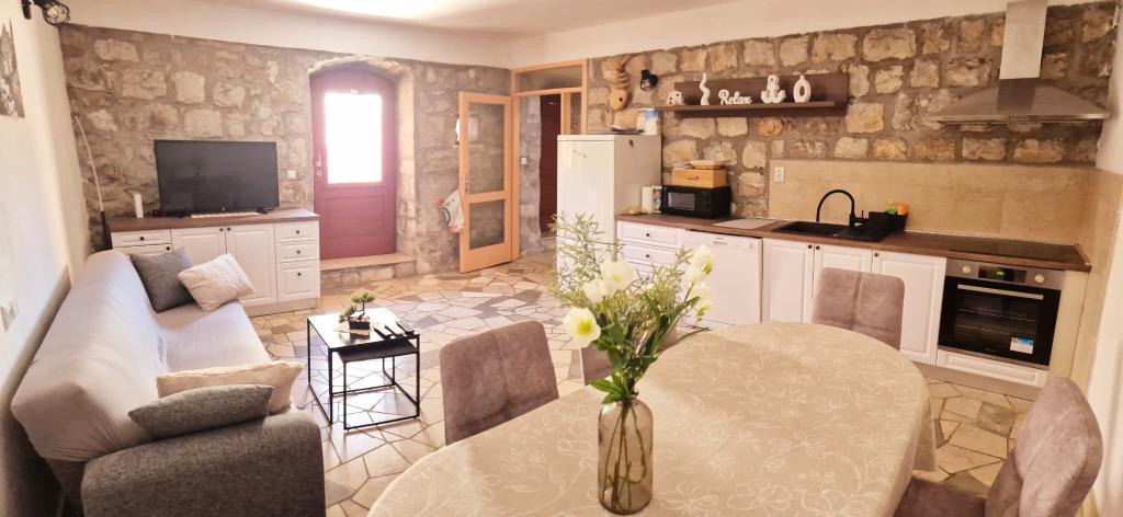 Une vieille maison en pierre à Hodilje, petite ville située à 2,5 km de Ston, offre calme et atmosphère détendue. Si vous souhaitez échapper à la foule des plages et passer des vacances en famille idéales, vous êtes au bon endroit. À Hodilje même, vous trouverez trois plages, un excellent restaurant de poissons et une grande boutique à prix abordables à environ un kilomètre de la maison. Hodilje se trouve à environ 50 kilomètres de Dubrovnik et de Korčula, et le parc national de Mljet est à 5 kilomètres. Vous êtes au carrefour idéal pour des excursions d'une journée. La maison d'hôtes Roses dispose de trois chambres et d'une salle de bain au premier étage. Au rez-de-chaussée, vous trouverez une cuisine, un grand salon et des toilettes. Dans la cour, vous trouverez une terrasse couverte et un barbecue. La maison est équipée de tout le nécessaire : climatisation, Wi-Fi, Netflix… Nous nous réjouissons de votre arrivée et ferons de notre mieux pour que vos vacances soient inoubliables.