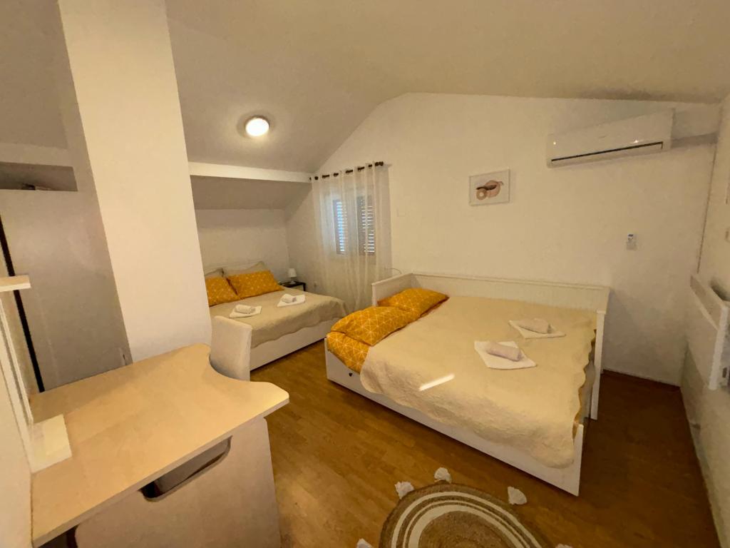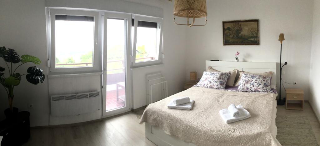 La maison de vacances entièrement équipée est située sur une colline entourée de verdure et de fleurs avec une belle vue sur Zagreb et ses environs. La capacité est de 8 personnes. Il se compose de deux chambres; un lit double et un lit simple, et dans la deuxième chambre un lit double et un lit double avec matelas séparés et un canapé dans le salon. Deux salles de bain. Cuisine entièrement équipée avec réfrigérateur avec petit congélateur, lave-vaisselle, cafetière filtre, four... et table à manger. Grand sauna finlandais. Fléchettes électriques. Grande terrasse couverte avec table et salon de jardin, offrant une belle vue, le chant des oiseaux et un grand barbecue. Le parking pour deux voitures et le wi-fi sont inclus dans le prix de location. Pendant les mois d'été, un jacuzzi et des chaises longues supplémentaires sont disponibles. Dans la région, vous pourrez faire de la randonnée, de la marche, du vélo, pêcher, visiter l'endroit avec la voiture la plus rapide du monde, le parc Adrenaline et profiter de la gastronomie locale.