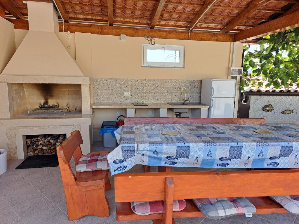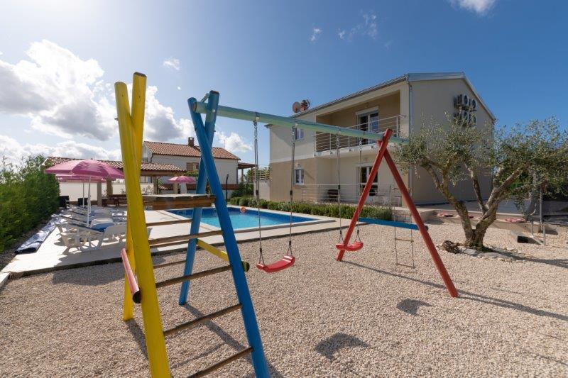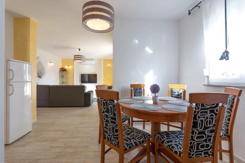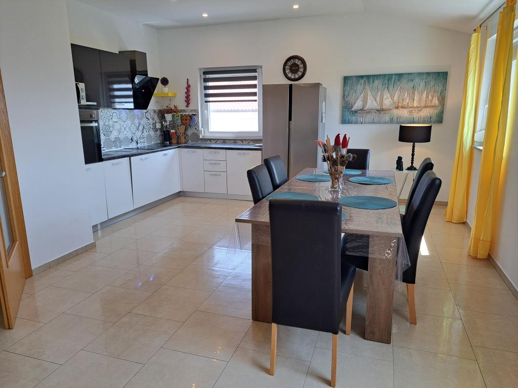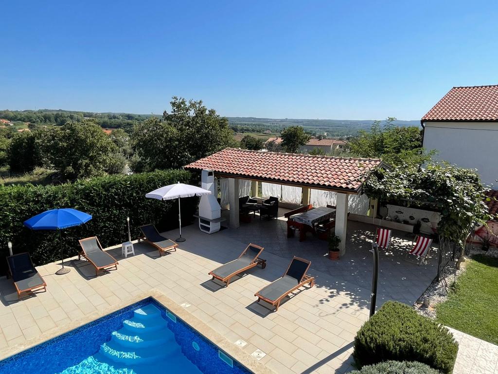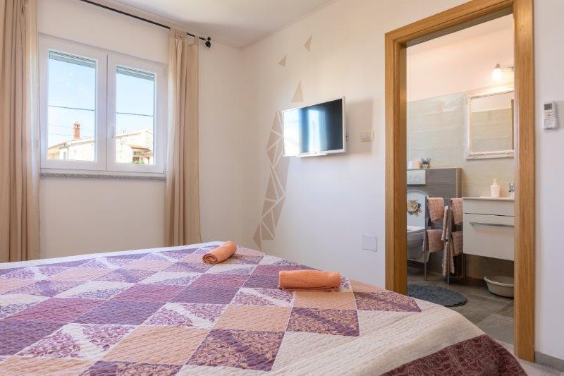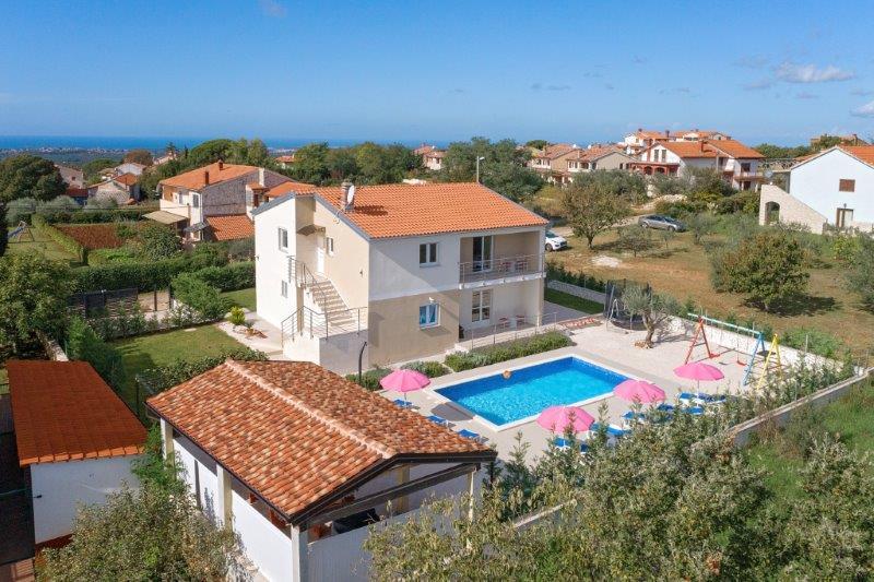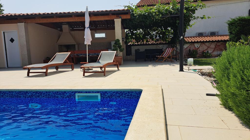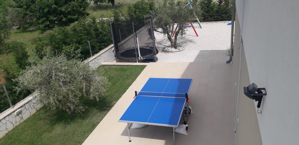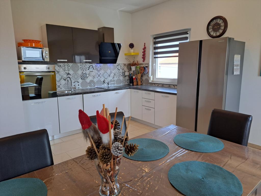 Nous sommes situés dans la petite ville de Kaštelir, à 10 km de Poreč. La maison se compose de deux appartements séparés, l'un au rez-de-chaussée, l'autre au premier étage, la maison est louée dans son ensemble. Chaque appartement se compose d'un séjour, d'une cuisine, de deux chambres, chacune avec sa salle de bain. Chaque appartement dispose de 3 climatiseurs, un dans le salon et un dans chaque chambre. L'appartement est équipé de tout le nécessaire pour un séjour agréable. A l'extérieur, il y a une aire de jeux pour enfants avec des balançoires, un trampoline et une table de ping-pong. La cour est entièrement clôturée, vous pouvez donc amener votre chien, nous facturons un supplément de 12 euros par jour pour les chiens. A l'extérieur nous disposons également d'une piscine de 8*4m, de chaises longues, de parasols et d'une cuisine d'été avec barbecue. Devant l'appartement, nous avons 6 places de parking, dont 2 couvertes. En raison d'autres obligations avec nous en juillet et août, il n'est possible de réserver que du dimanche au dimanche, et dans les autres mois, le minimum est de 5 jours et l'heure d'arrivée peut être n'importe quel jour de la semaine. La maison est idéale pour 8 personnes, mais peut également accueillir 10 personnes. Pour une p