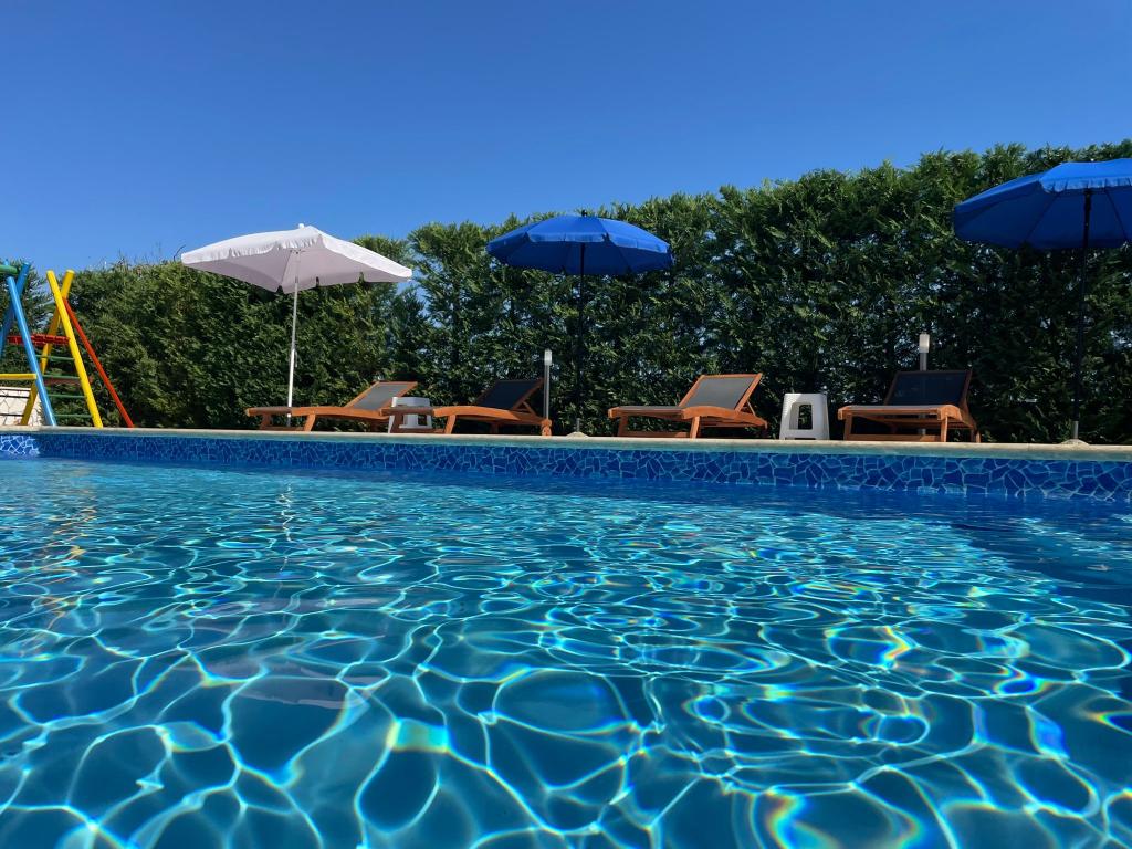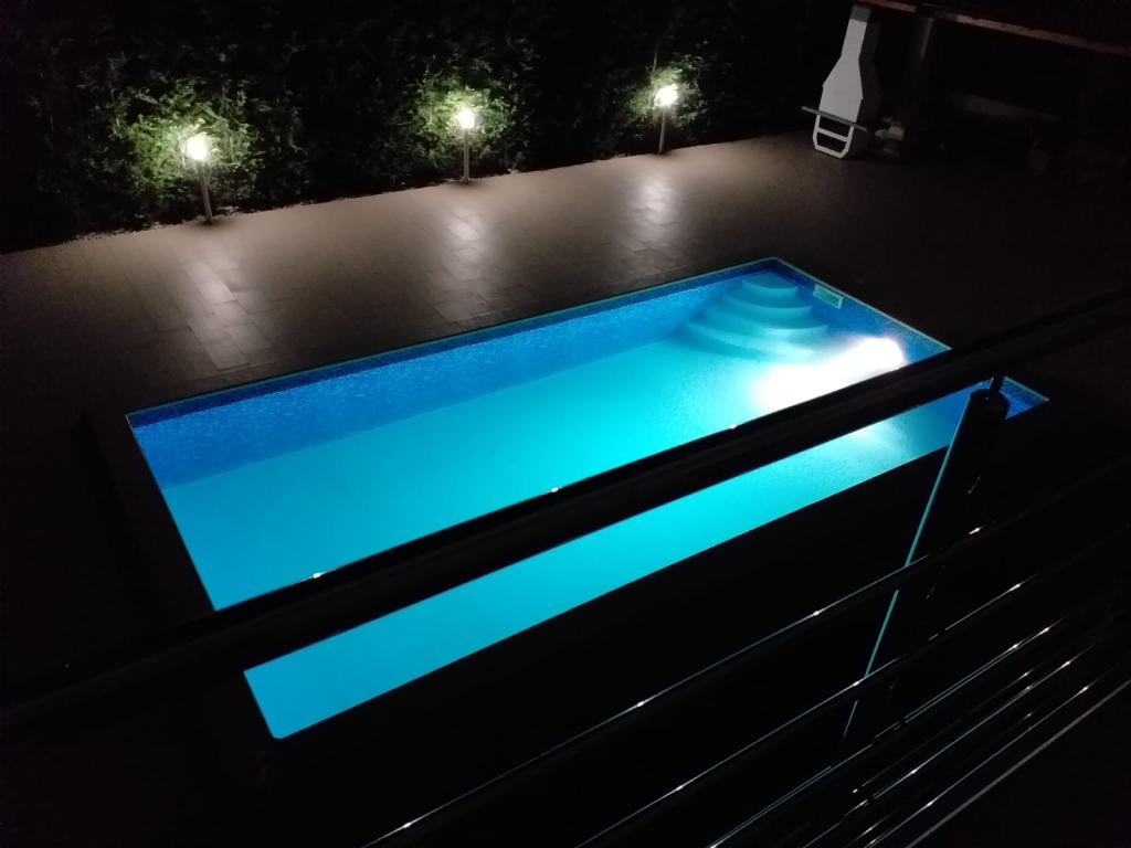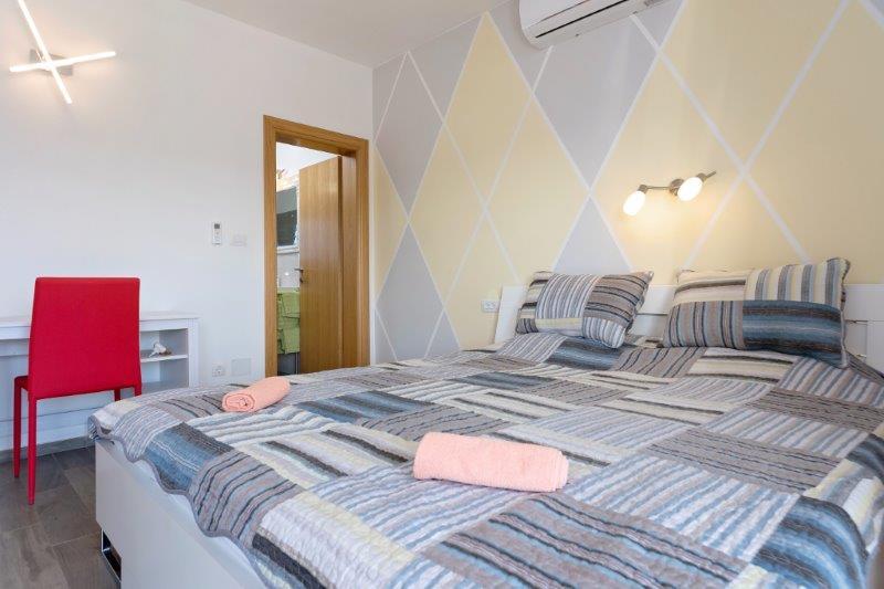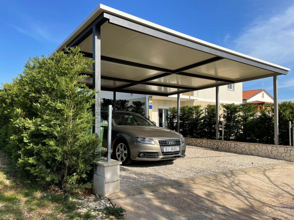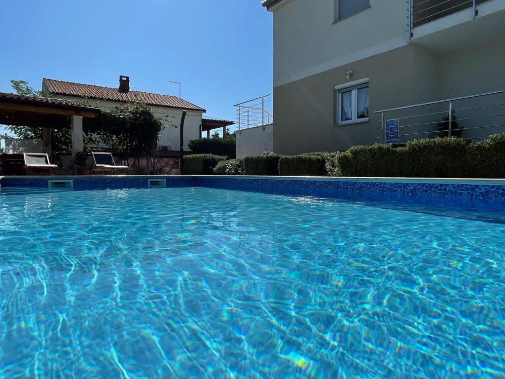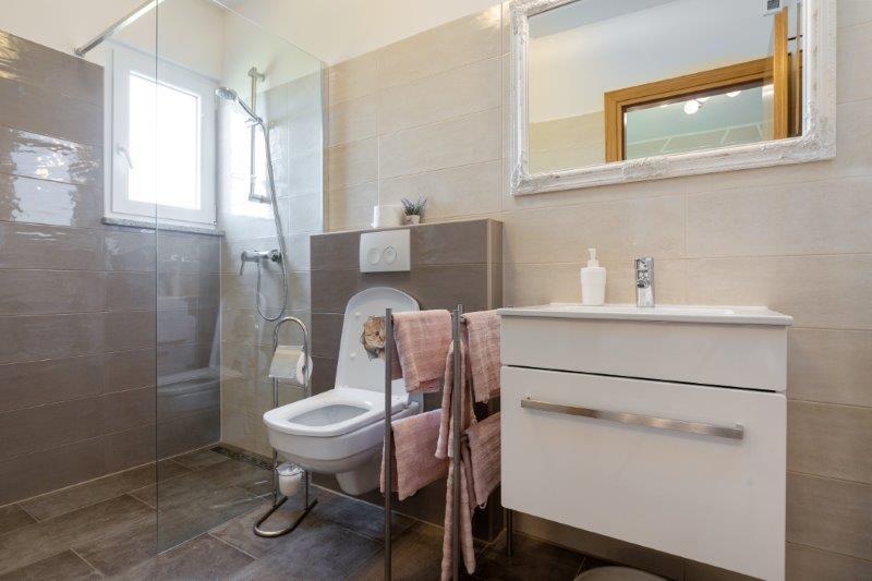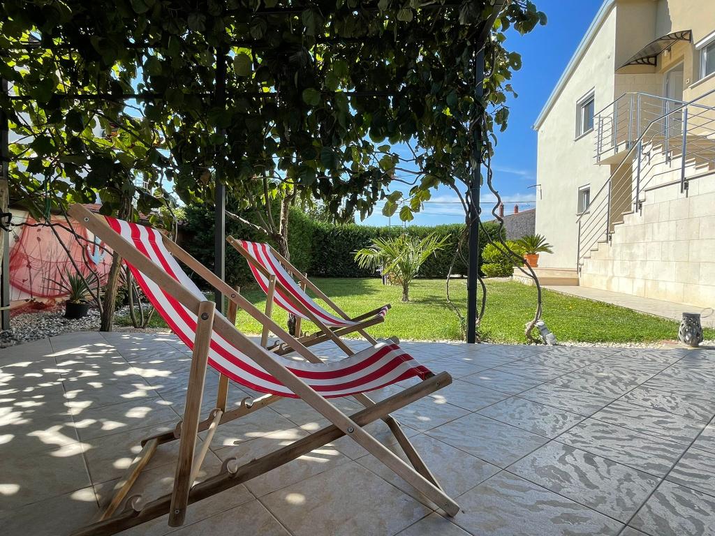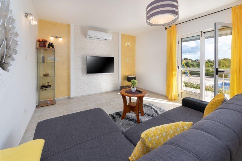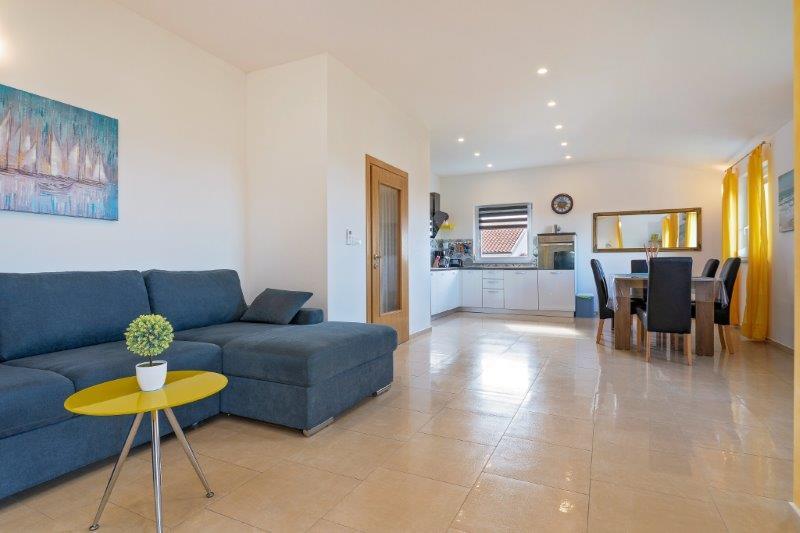 Nous sommes situés dans la petite ville de Kaštelir, à 10 km de Poreč. La maison se compose de deux appartements séparés, l'un au rez-de-chaussée, l'autre au premier étage, la maison est louée dans son ensemble. Chaque appartement se compose d'un séjour, d'une cuisine, de deux chambres, chacune avec sa salle de bain. Chaque appartement dispose de 3 climatiseurs, un dans le salon et un dans chaque chambre. L'appartement est équipé de tout le nécessaire pour un séjour agréable. A l'extérieur, il y a une aire de jeux pour enfants avec des balançoires, un trampoline et une table de ping-pong. La cour est entièrement clôturée, vous pouvez donc amener votre chien, nous facturons un supplément de 12 euros par jour pour les chiens. A l'extérieur nous disposons également d'une piscine de 8*4m, de chaises longues, de parasols et d'une cuisine d'été avec barbecue. Devant l'appartement, nous avons 6 places de parking, dont 2 couvertes. En raison d'autres obligations avec nous en juillet et août, il n'est possible de réserver que du dimanche au dimanche, et dans les autres mois, le minimum est de 5 jours et l'heure d'arrivée peut être n'importe quel jour de la semaine. La maison est idéale pour 8 personnes, mais peut également accueillir 10 personnes. Pour une p