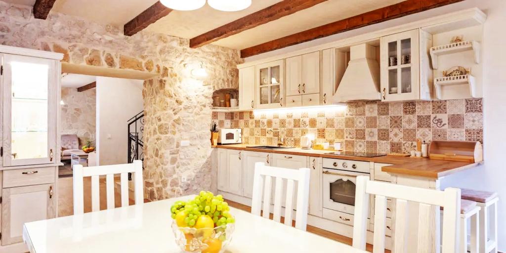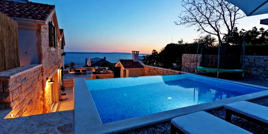 Une villa spectaculaire construite à la main située au cœur de la nature, où votre âme et votre corps se reconnecteront. La maison est située dans un village indigène, perchée au sommet du village, offrant des vues spectaculaires et la paix. Une partie de la maison est encore d'origine, et le reste a été construit à la main à partir de pierres provenant du village lui-même. Beaucoup d'amour y a été tissé, donc votre séjour, en plus du luxe qu'il offre, vous apportera une touche d'antan. La maison est à 5 km de la ville de Makarska.