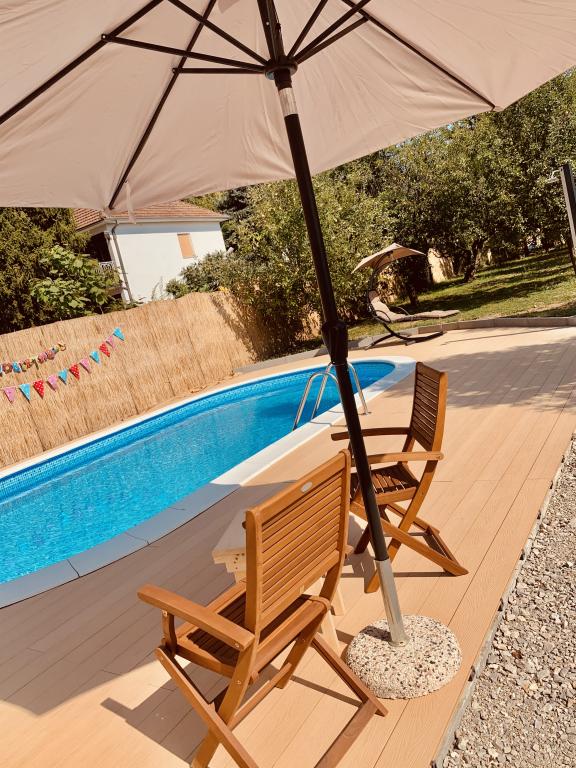 Maison de vacances entièrement et modernement équipée avec 4 étoiles dans une station balnéaire, complètement en pleine nature, juste à côté de la rivière Bosut, entourée de forêt. L'établissement dispose d'une piscine extérieure de 8x5 m, d'un espace spa bien-être : jacuzzi et sauna finlandais, d'un terrain clôturé de 1500 m2, d'une cabane dans les arbres pour dormir et d'une cabane avec un grill Ofyr. Pour un séjour de max 6 personnes. 20 km de la ville héroïque de Vukovar, 40 km de Baranja.