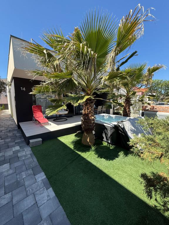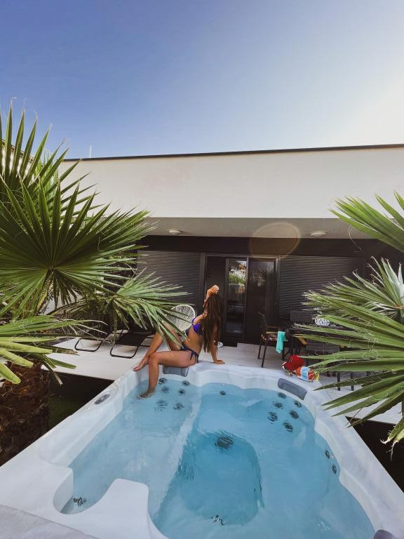 La maison est nouvellement meublée, 100 m2 dispose de 3 chambres dont 2 avec lits coffres, la troisième chambre avec deux lits séparés, cuisine avec tous les appareils électroménagers, lave-vaisselle, four, cuisinière, réfrigérateur avec congélateur, une salle de bain et douche extérieure, jacuzzi dans le cour, parking sécurisé, à 350m de la mer, à 350m du centre, toutes les commodités sont à proximité immédiate, vous pouvez tout visiter sans voiture, voisins sont à proximité immédiate, le client est tenu de respecter le règlement intérieur. L'hôte n'habite pas dans la même maison, l'hôte veille à la qualité de l'eau du jacuzzi.