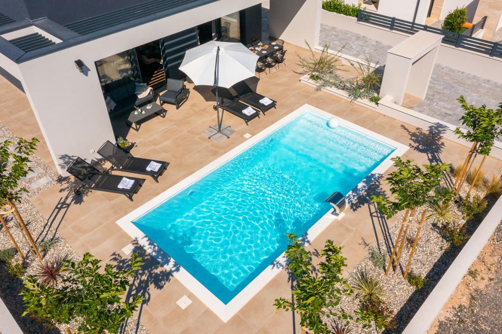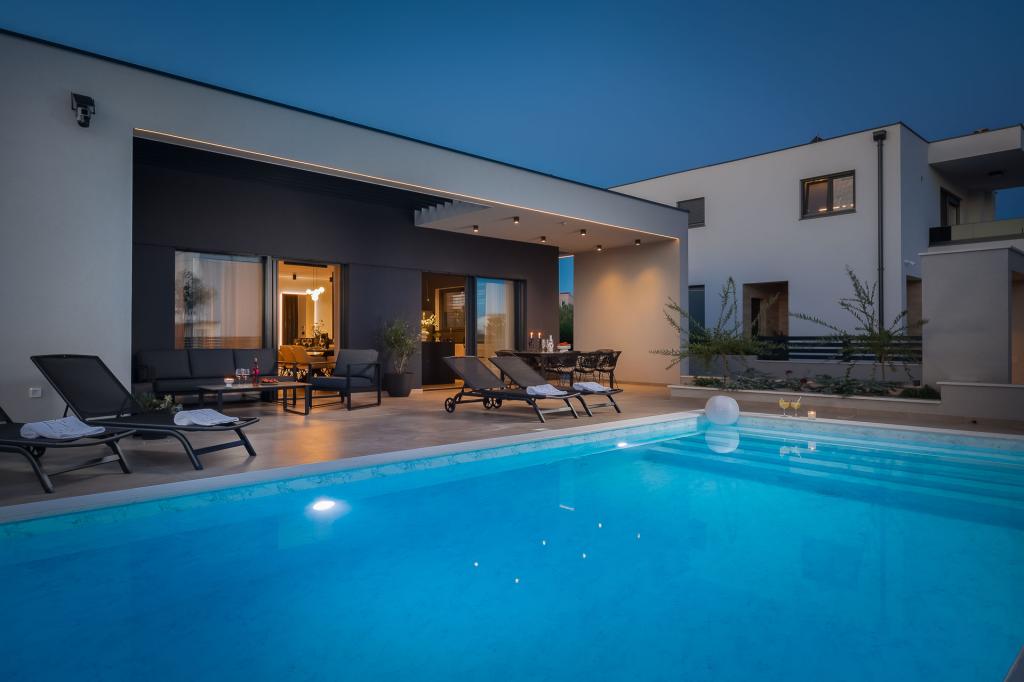Villa moderne joliment décorée à Vodice, située dans un village paisible, idéale pour vos vacances. De plain-pied, elle comprend une grande cuisine ouverte et un spacieux salon avec un canapé confortable. Elle dispose de trois chambres avec salles de bains attenantes. Vous pourrez vous détendre sur la grande terrasse au bord de la piscine et déguster des plats préparés au barbecue. La villa est clôturée.